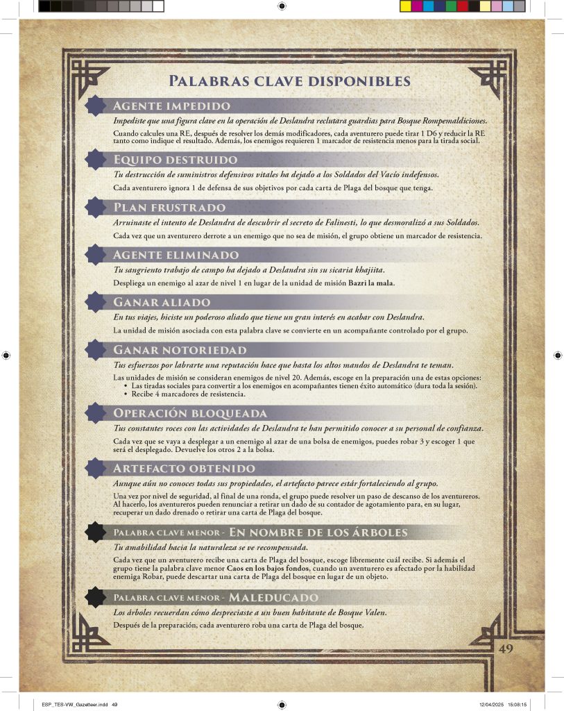 - Alemán (Frosted Games): A mediados de mayo estarán listos todos los archivos. Se estima que el contenido que no sea del libro de reglas ni del gazetteer se enviará a mediados de abril.