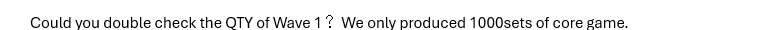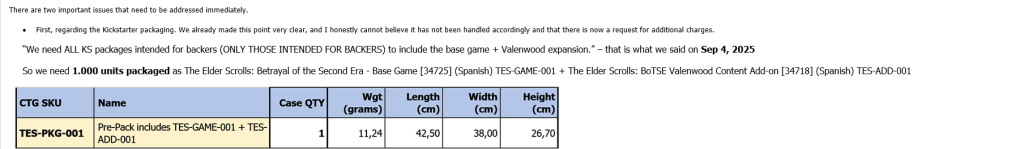 Viendo esta situación, y que se nos venía el Año Nuevo Chino encima, el día 3 de febrero cuando ya se supone tendría que estar todo (pero no teníamos confirmación a pesar de ir preguntando), básicamente les dijimos que nos mandasen las cosas en 2 oleadas: una primera con los juegos y expansiones, y la siguiente con los add ons, extras, juegos en inglés etc. etc. (si estábamos sufriendo estos retrasos solo con la parte «fácil» no me quiero imaginar el follón de preparar adecuadamente todo lo demás, mezclando cosas en distintos idiomas incluso). Aquí aprovechamos y les dijimos que puesto que aún estaban empaquetando, que en vez de 1000 juego + expansión fueran 1500 (ya que en precompra había bastantes packs de este tipo)